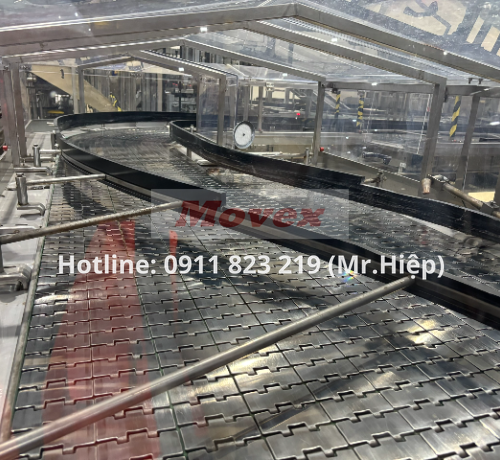 Trong ngành nước giải khát và bia rượu, băng tải xích inox Movex 812-815 Flat Top là một giải pháp hoàn hảo cho những công đoạn chiết rót, vận chuyển chai, lon, lốc nước hoặc thùng nặng. Với cấu tạo từ thép không gỉ được xử lý bề mặt kỹ lưỡng, dòng xích này không chỉ thực hiện tốt các chức năng vận chuyển cơ bản mà còn mang lại khả năng chịu tải và độ bền vượt trội, đáp ứng những yêu cầu khắt khe nhất về tuổi thọ thiết bị trong dây chuyền sản xuất.